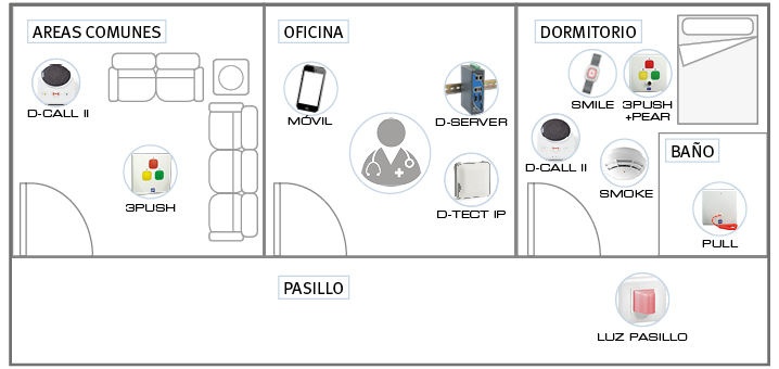 REPO+ II forma parte de nuestro sistema TREX 2G que ofrece a las residencias y centros de atención soluciones como el control de errantes, el sistema de llamada de paciente a enfermera, control de accesos y botón de pánico.